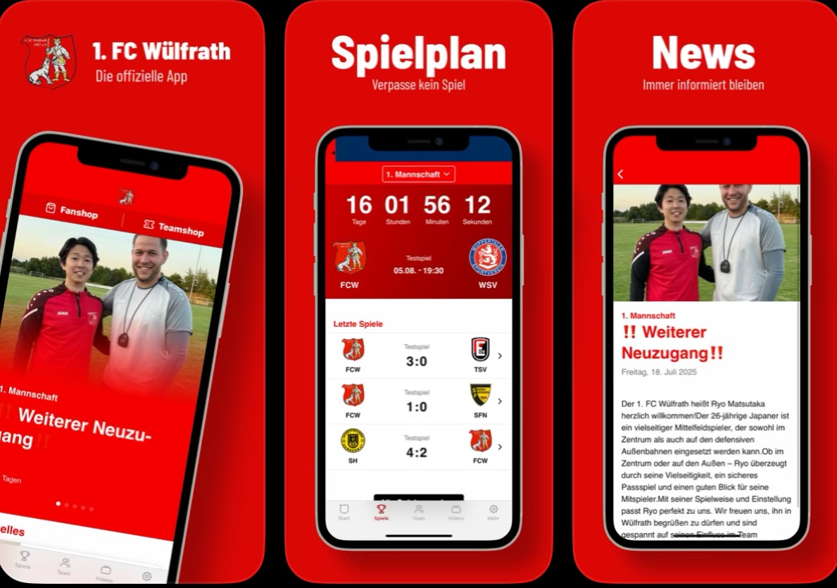 Einfach übers Handy Appstore ( Google Play Store oder App Store von Apple ) öffen -> Suchen : 1.FC Wülfrath oder nur Wülfrath eingeben und downloaden. Keine Anmeldeung nötig